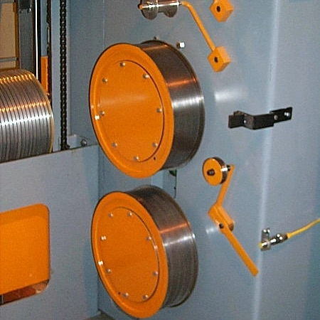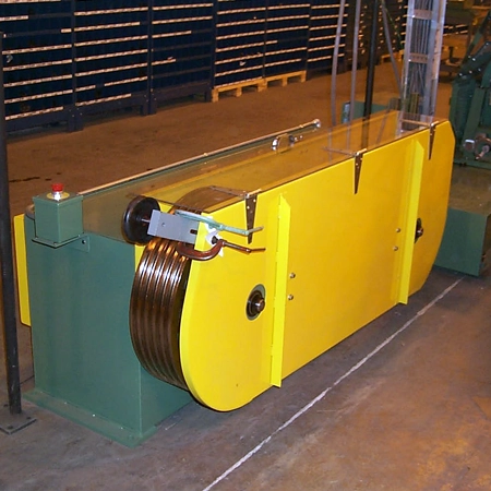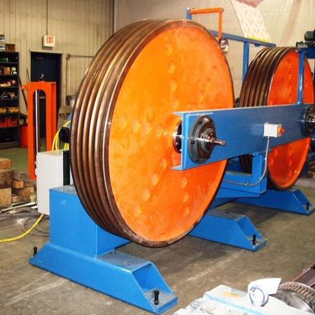 The Wheeled Capstan is designed to pull the product which is wound around the capstan and fleeted by a fleeting roller. A pneumatic pressure roller is moved to the surface of the capstan when the line is stopped to reduce back-slippage when the downstream tension is released. The capstan drive is coordinated with the line drive system and works in speed control mode and can work as a tensioning or metering capstan. The power rating of the capstan is chosen for each application providing the necessary pull and control required for the products specified. The capstan can be either floor or pit mounted. Bartell manufactures a wide range of Dual and Single Wheel Capstans to suit most applications using wheels with diameters between 24 inches (610mm) and 98.4 inches (2500mm) and pulling force up to 15 tones.