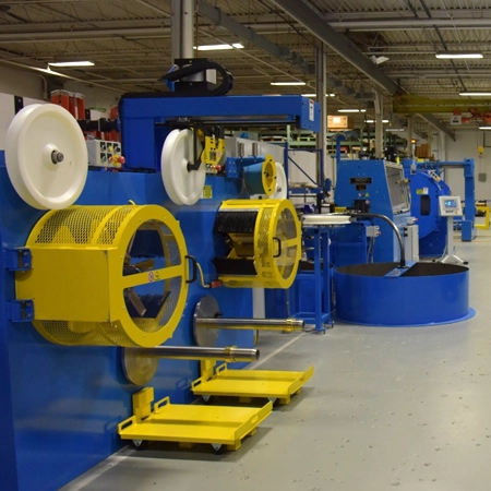 The 50 mm (2″) strip armouring machine is typically used for the production of smaller armored cables and flexible conduits and is the optimal solution for the production of armoured building cables (MC & AC), ESP cable (Electrical Submersible Pump), data, fiber optic, safety & fire alarm cables.