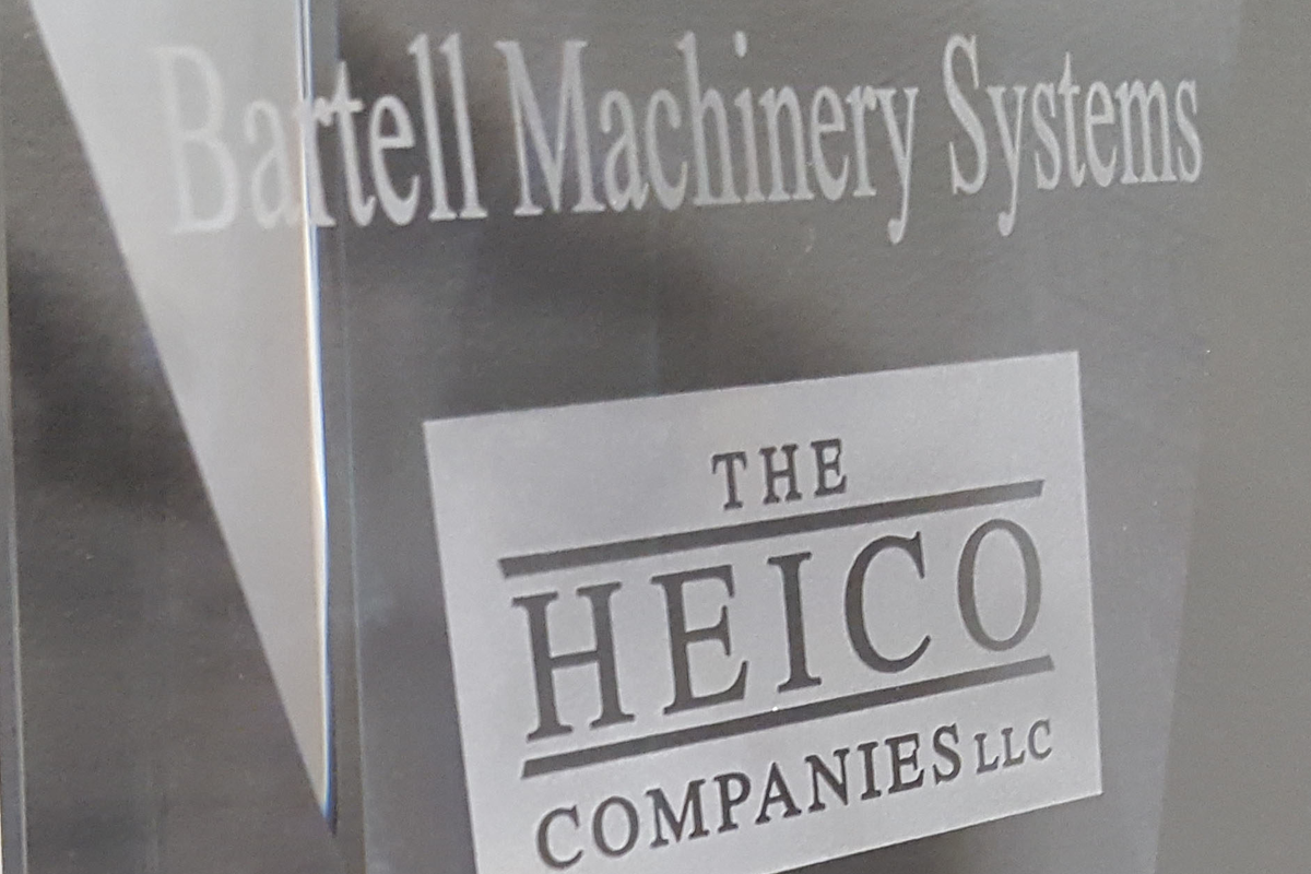 Rome, NY – Bartell Machinery Systems has the extreme pleasure of announcing that it has been awarded The HEICO Companies “Innovation Award.” This prestigious award recognizes a business’s efforts to realize innovation through a commitment to product development and a culture where innovation is engrained in the fabric of the business at all levels.
